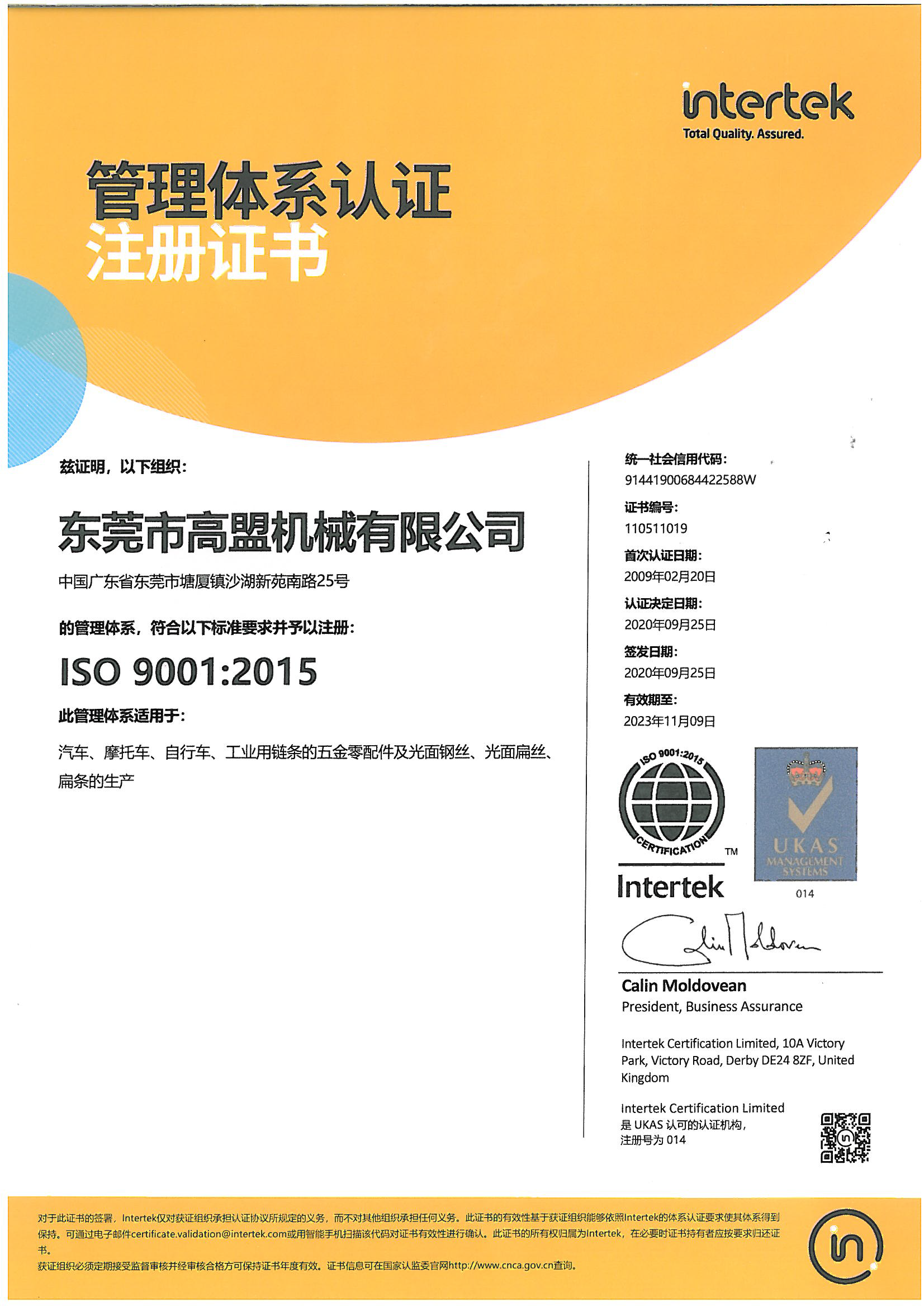 上一主題: ISO9001: 2015證書英文